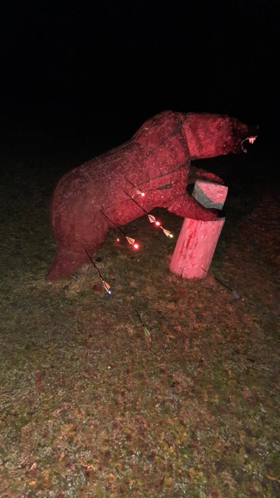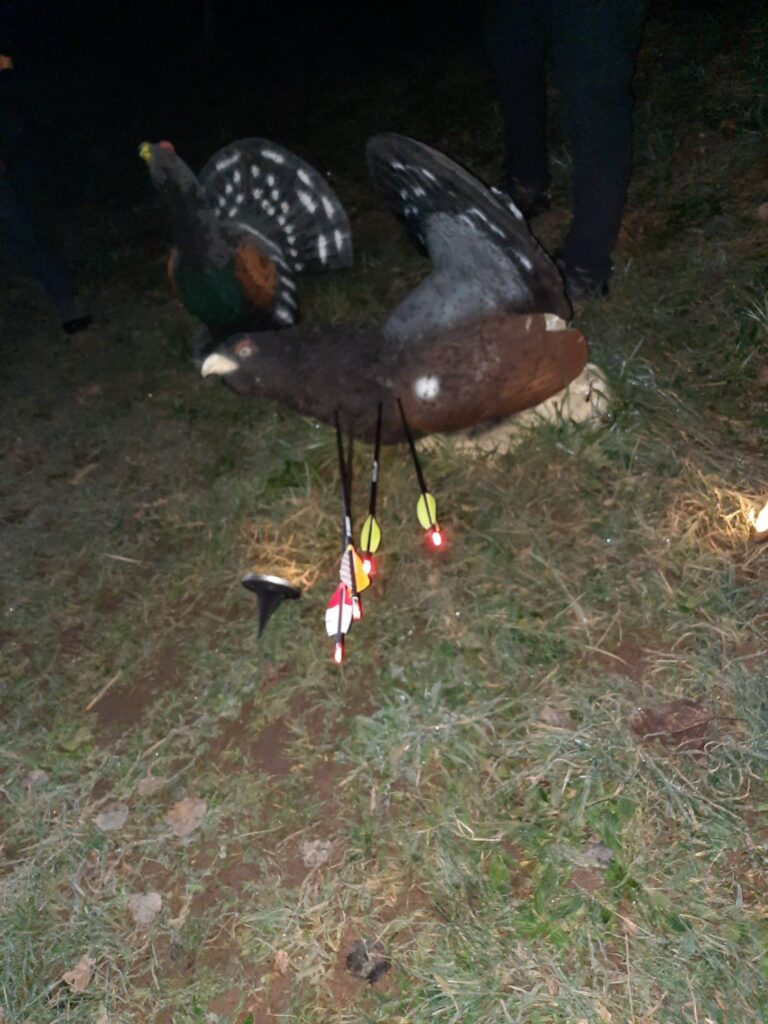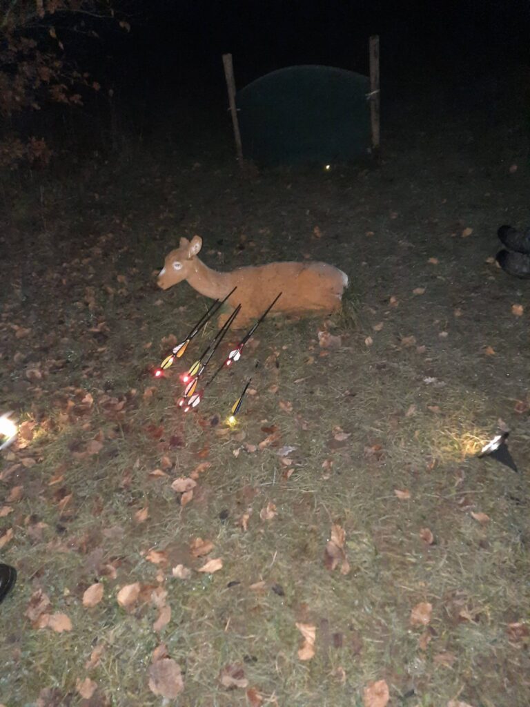 Pfeile mit Leuchtnocken wurde dann durch die dunkle Nacht auf die ausgeleuchteten Tiere geschossen.